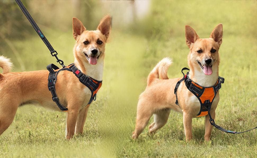 Two heavy-duty metal D-rings: front clip stops pulling instantly and gently redirects attention; back clip for relaxed walks, jogging or hiking.