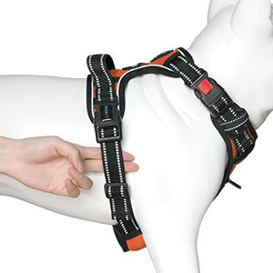 Note: When the dog harness is well adjusted, you should be able to fit 2 fingers between the harness and any part of your dog’s body.