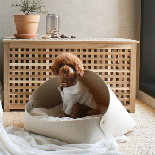 • The wooden frame adds a touch of elegance, while the innovative design ensures your pet enjoys a cozy, therapeutic sleep experience year-round.