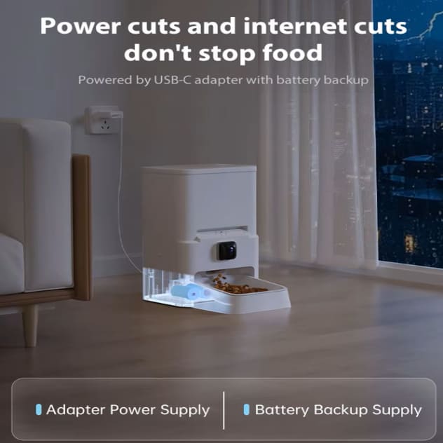 Dual power (adapter + battery) auto-switches during outages, ensuring reliable feeding even on stormy day
